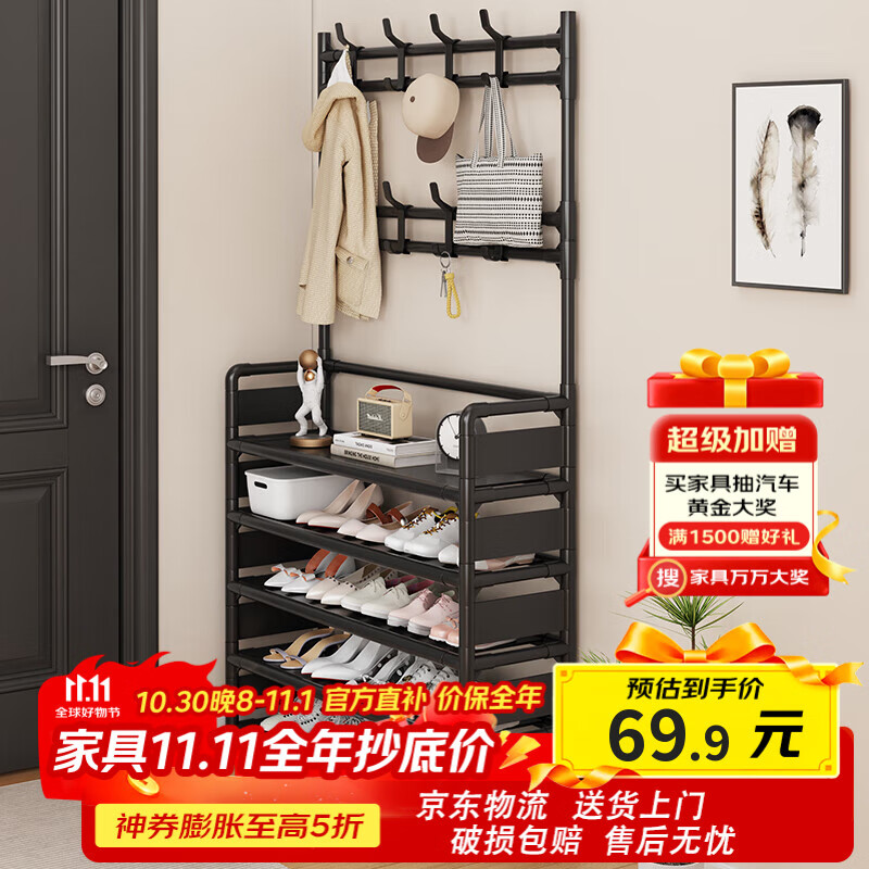 包邮 苡茉鞋架家用门口多层简易鞋帽一体鞋柜宿舍出租屋置物收纳架子4层80